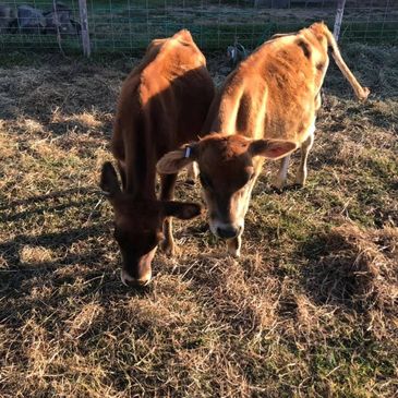 Our Jersey cows Gracie & Penny are very friendly and have a great demeanor! They love the camera and love it when they get treats!