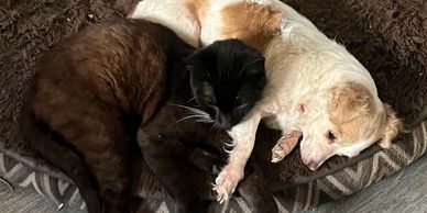 8/15/25: we HAD to grab this picture of one of our rescue cats "TUXEDO" and "LADY ANN" (our rescue chiwawa). These two have become BEST FRIENDS and are inseparatable!